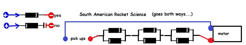 The diode 'ladder' is bi-directional, so will work for forwards / backwards..What Im sad about is they'll only run in one direction now - can you not do two chains of diodes, with a single diode in reverse in parralel? Or am I misunderstanding how they work here.