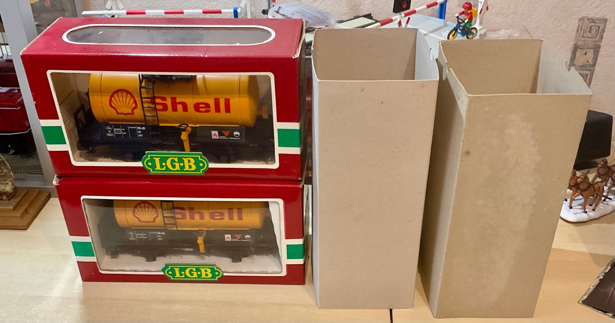 coming to the end of my recent pre Christmas clear out. Here are 5 x LGB Tanker wagons that are in great condition. There are 2 x boxes with outer mailers. One of those boxes has not got the internal packaging sad to say.