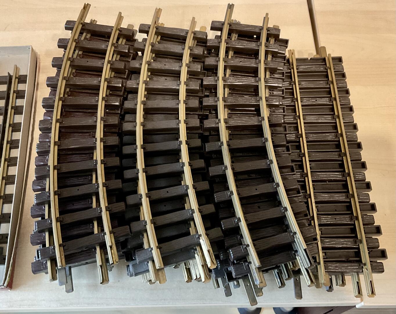 Track in great condition with only 2 x sleeper chairs broken in the whole lot. No missing fish plates and no damage. Transformer tested and works as expected, and has the bonus of the extra power feed for accessories etc. Transformer good for smaller loco's only as it is rated as 0.5amp. Buffer lamp tested and working.