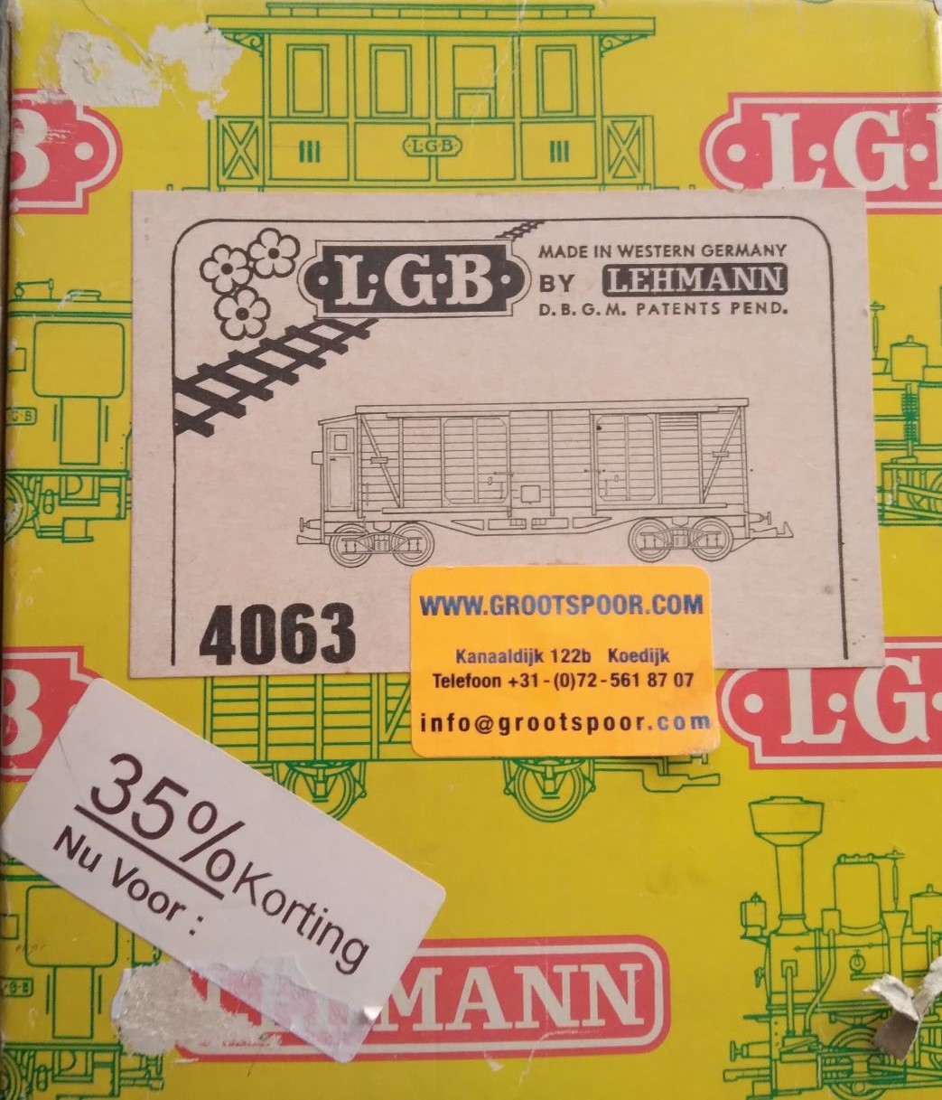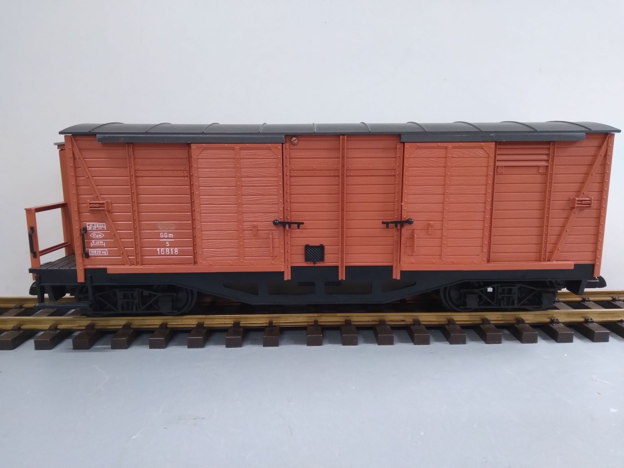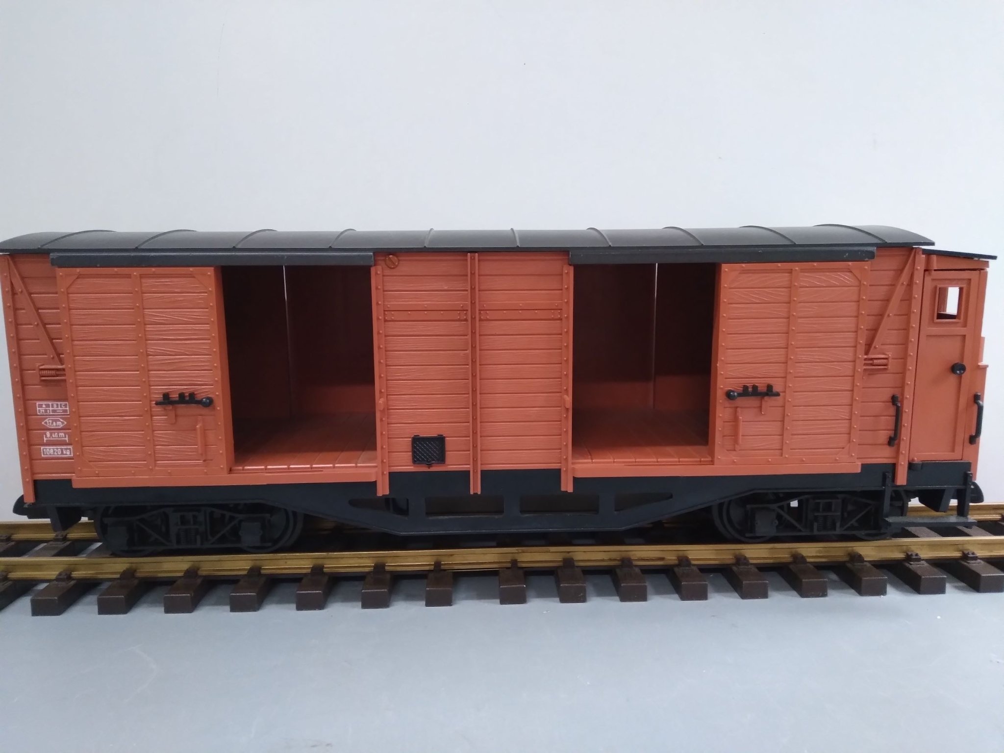These models have been made by LGB since the year dot, This is a "yellow box" version, even so it came to me new. Very good condition, only blemish is one of the OBB logos on one side wasn't printed properly, see picture. Coupling hooks at both ends. All doors and catches working. I estimate postage to UK mainland address £8 including insurance. PM me if interested.
