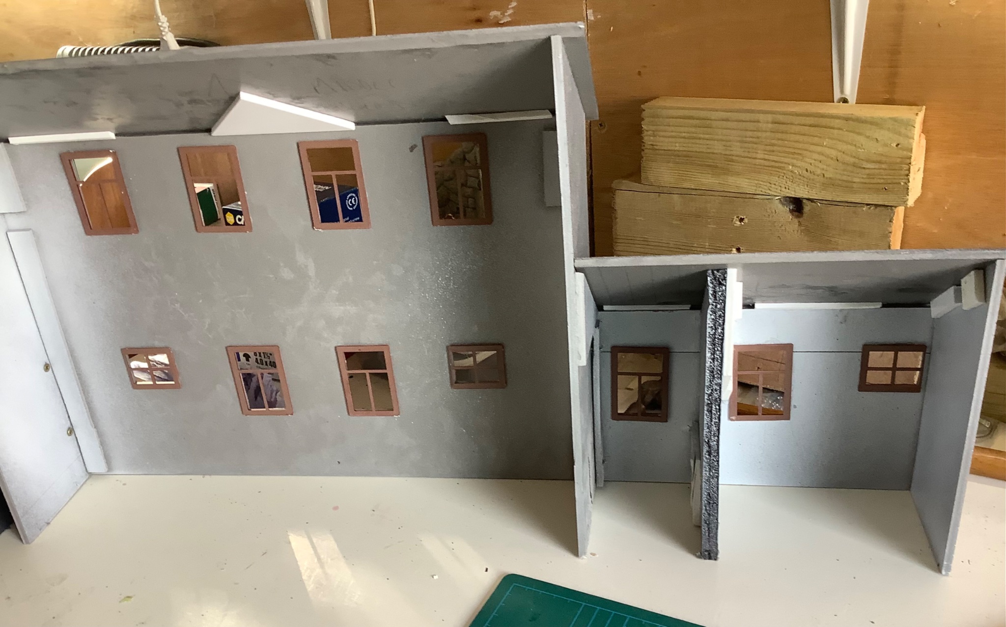 Work started cutting out lots of Plasticard coated Foam. Using existing windows to stock resulted in slight differences, with the windows clearly too small. Perhaps less height may have resolved this but. Ike was happy so onwards and upwards.
