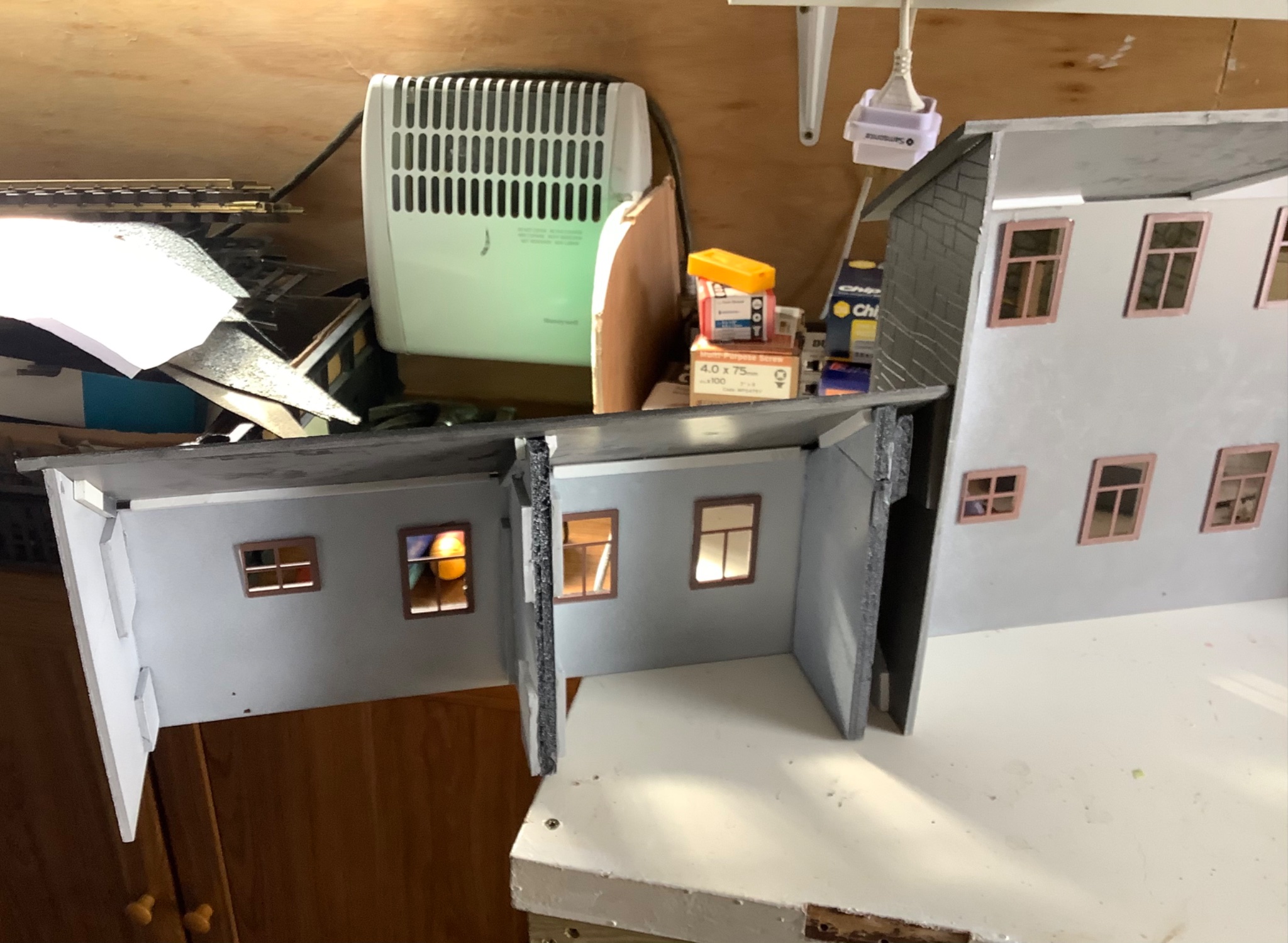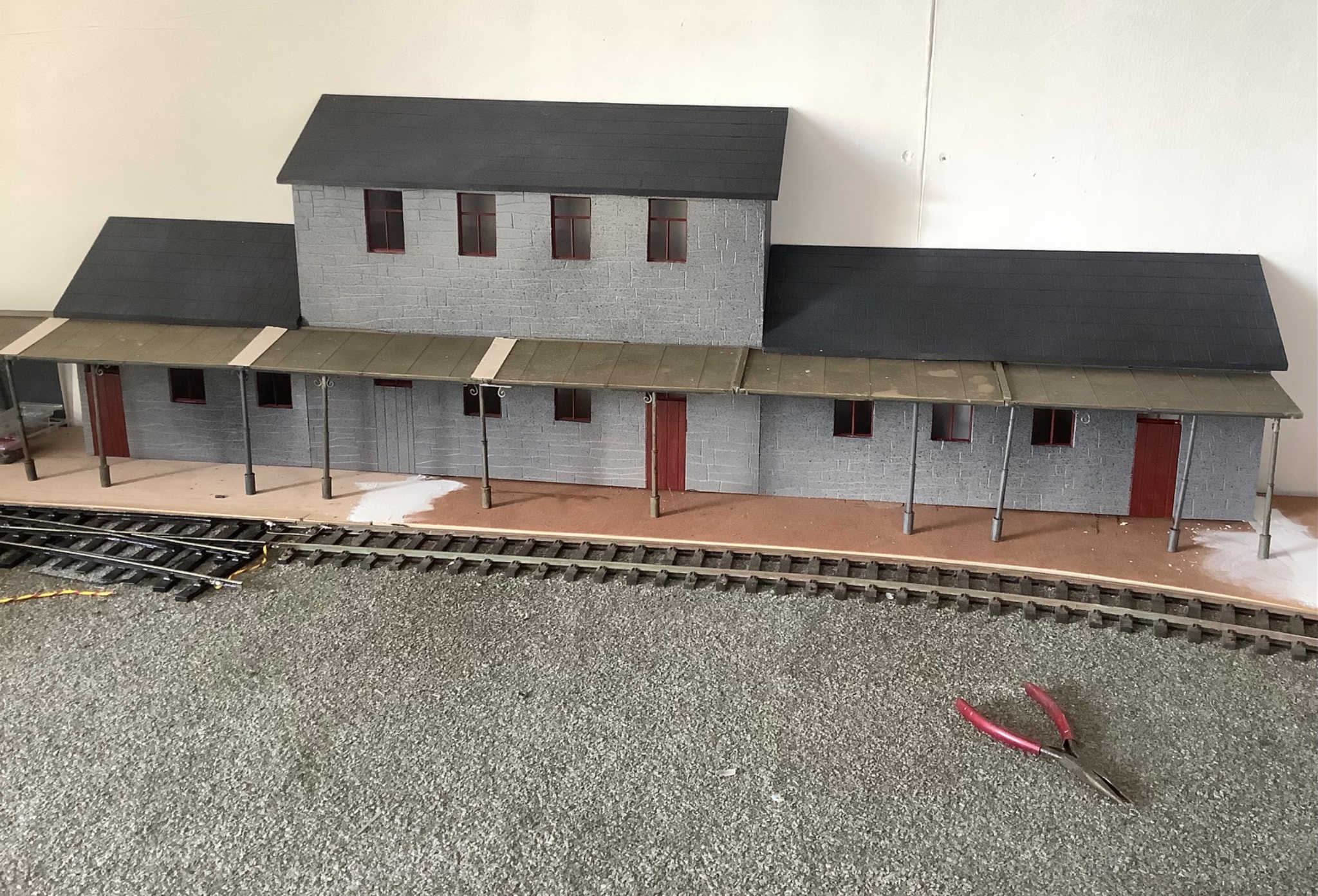 With the building in place thoughts turned to the Canopy, this was an old Piko that had seen better days before it’s move to Somerset. Mostly half width but some over was repaired, joined and fitted into place on ridges glued to tye building sides. This is also removable in I think 3 pieces.
