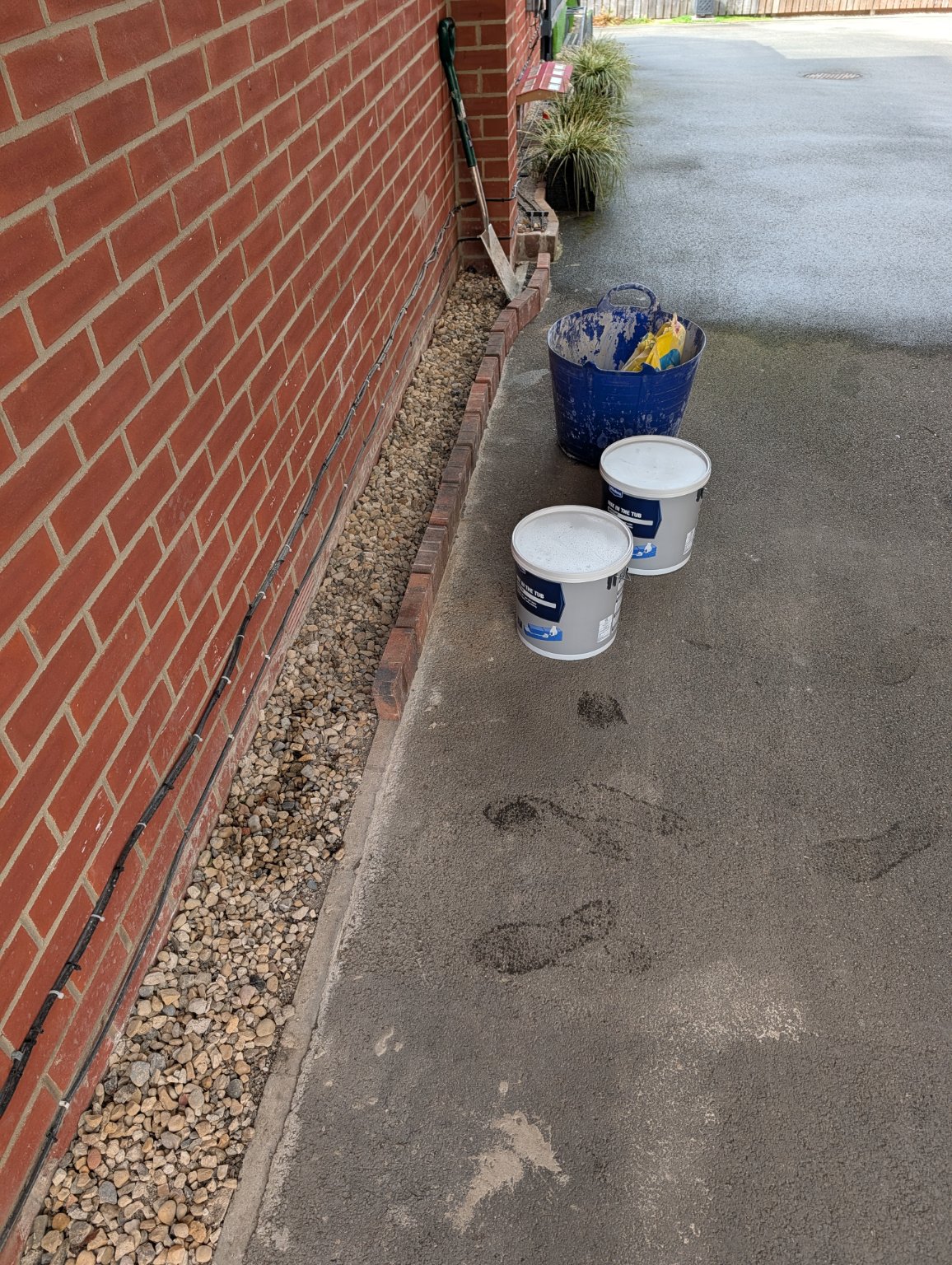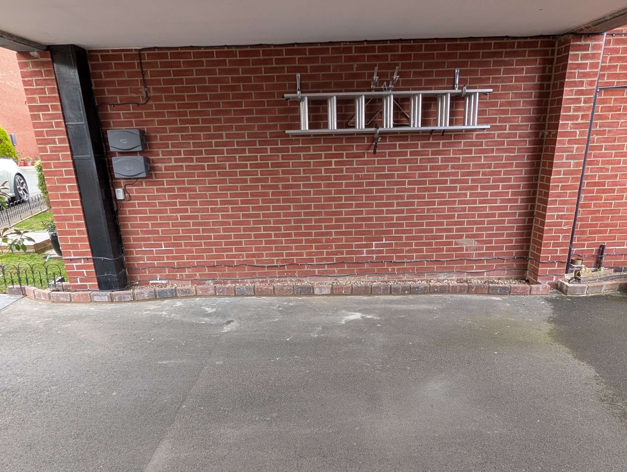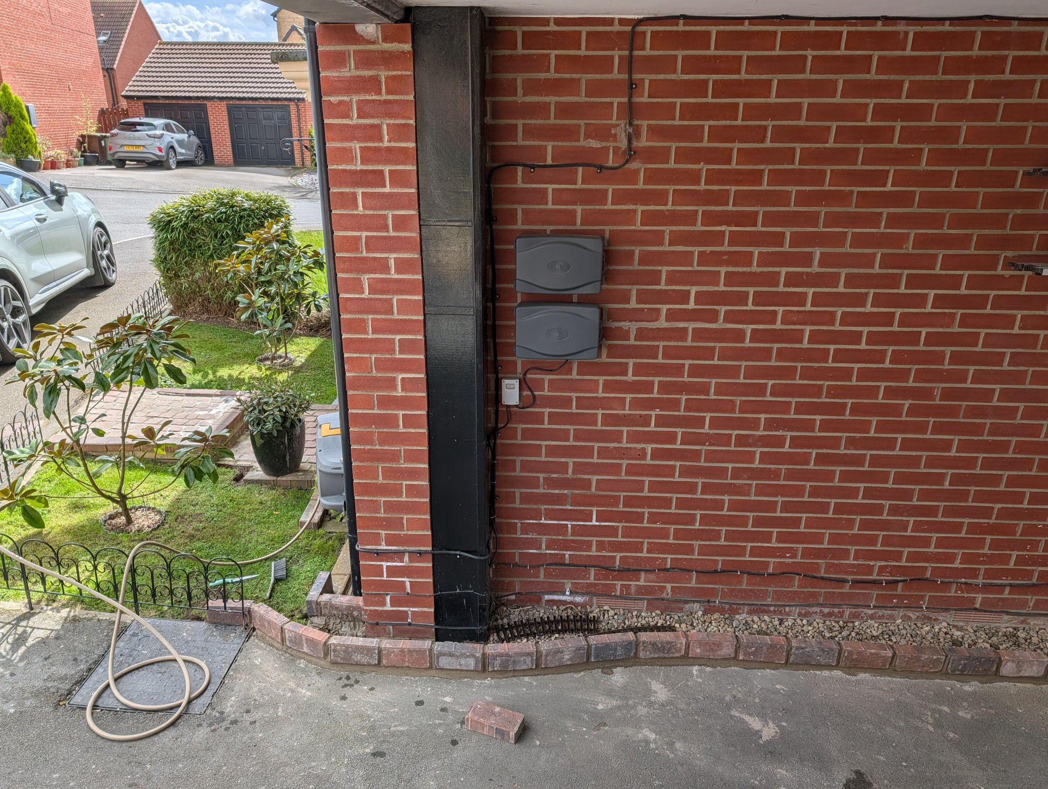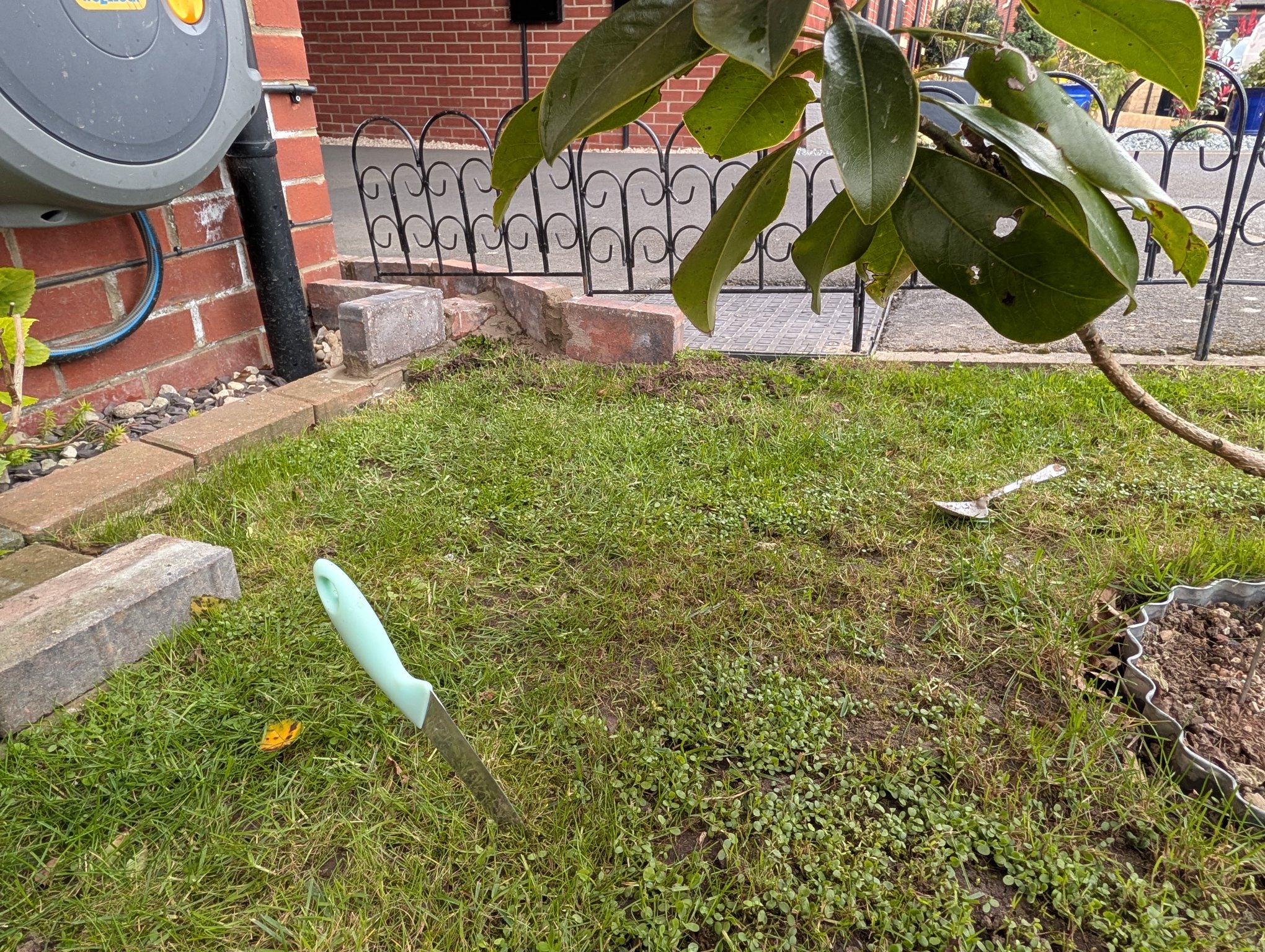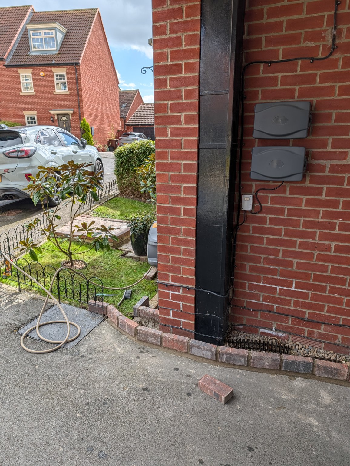 Cleaned both cars out today while I could be bothered, but it keeps raining so didn't do the outsides. So, I decided to get my cement mixed and do the brick work to the front garden, so that I can back fill with gravel another day, and get the track laid to at least the grass. The metal railing has been put back temporarily until I decide it's future.