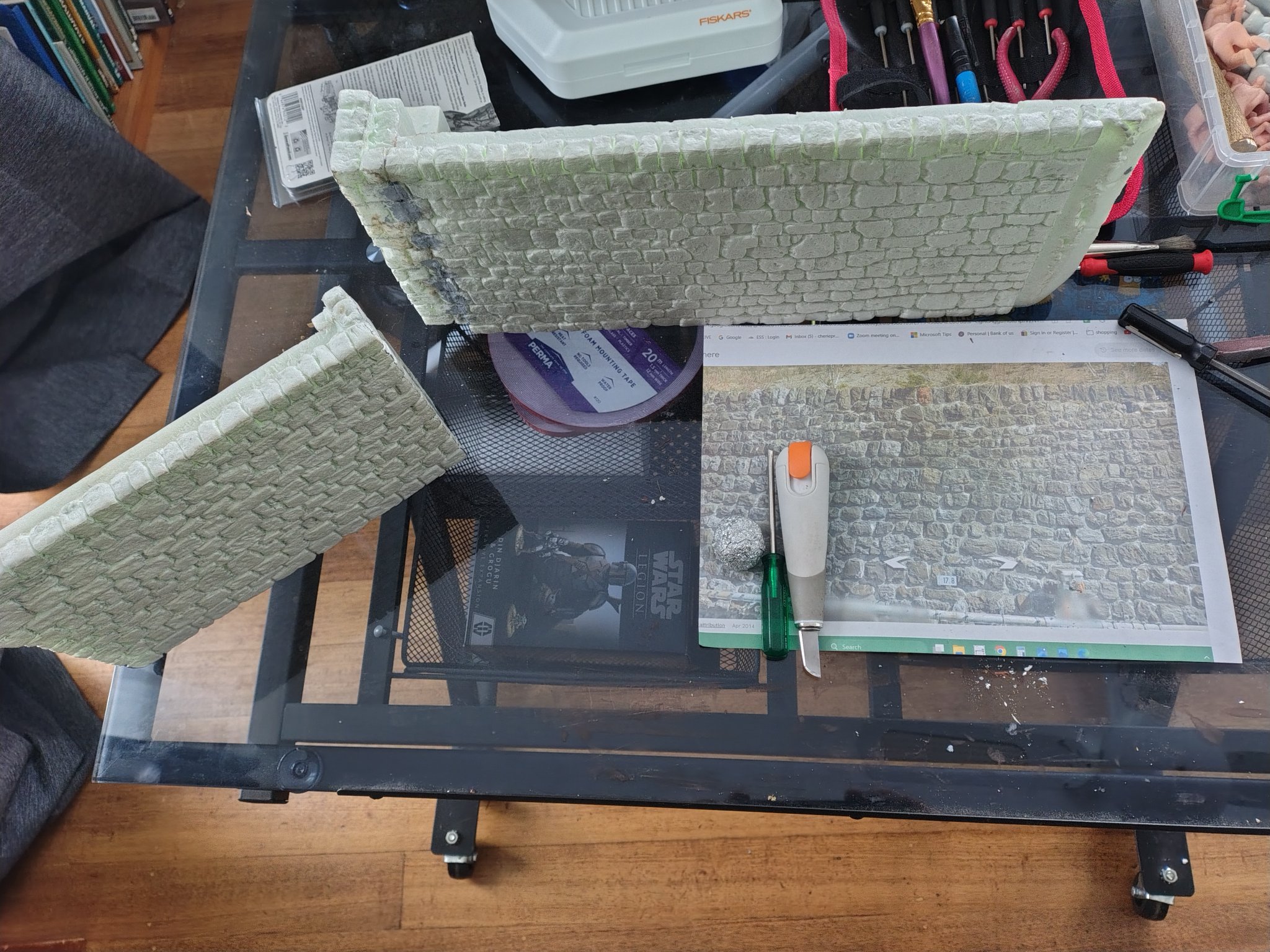 So you are carving thin foam for the walls? Or will it form the master for ultimately resin moulding?I run on tea. The ball of foil is used to texture the foam, works a treat.