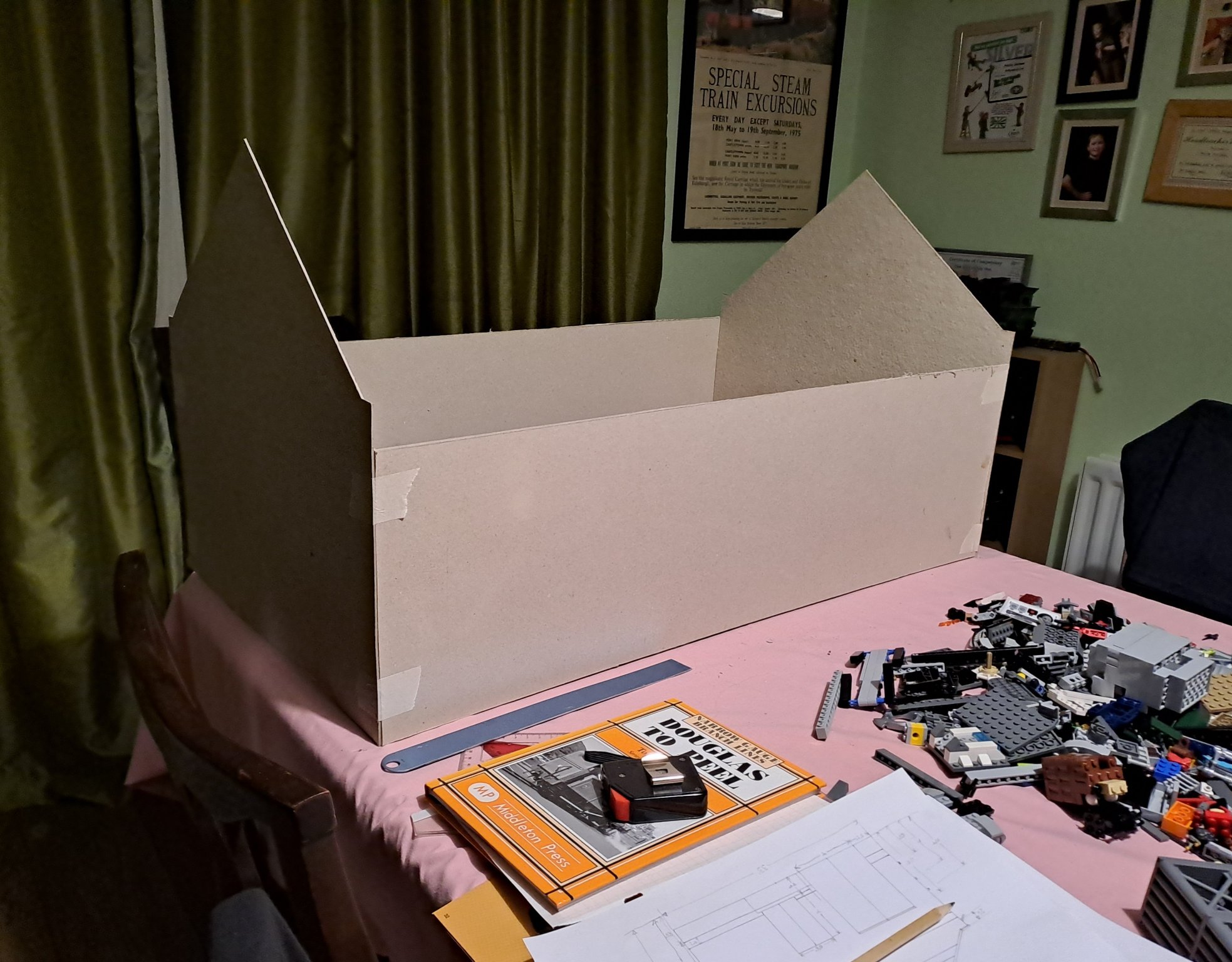 Managed to come up with a few measurements which came out at 33' x 53' or 485mm x 825mm in scale! That's nearly 2'x3', not a problem, then I built a cardboard mockup, oops! It's big