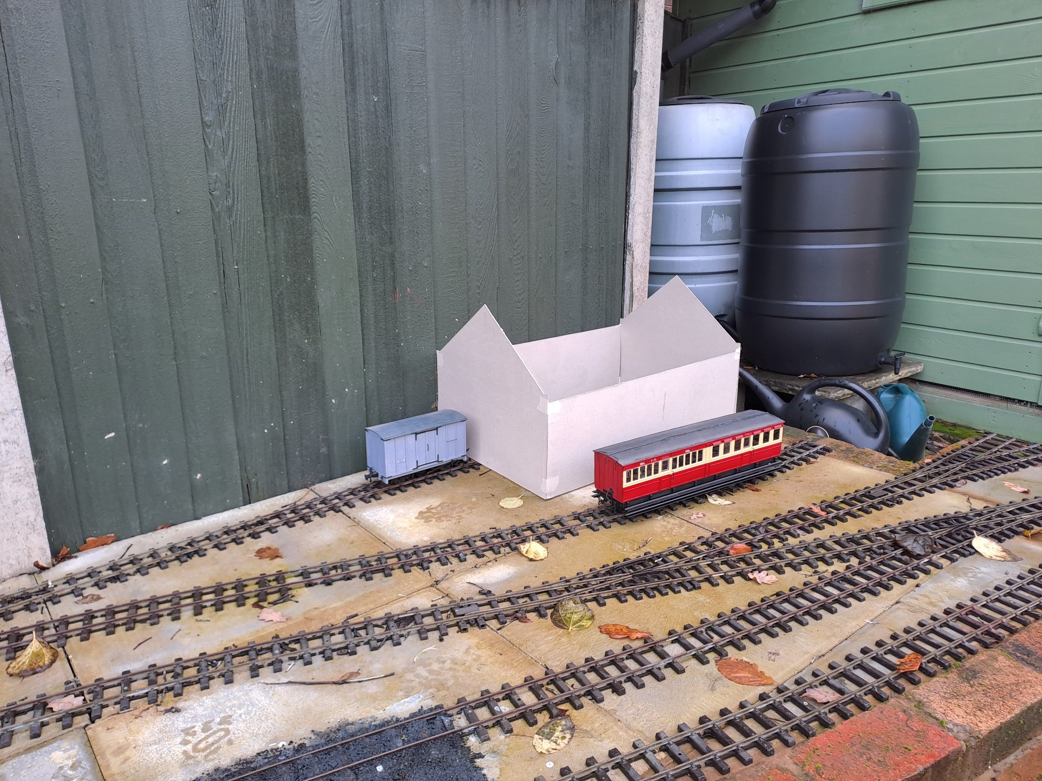 Cardboard prototyping is a great way to see how things will work, did a fair bit of it when building my pals Boston Lodge and Portmadog buildings. So much easier to cut down when you realise just how big things can be in our scale.LikeNorthsider I have a second project bubbling, namely making a building for the railway and for the IOM 15mm group stand at Stoneleigh, bags of time then
