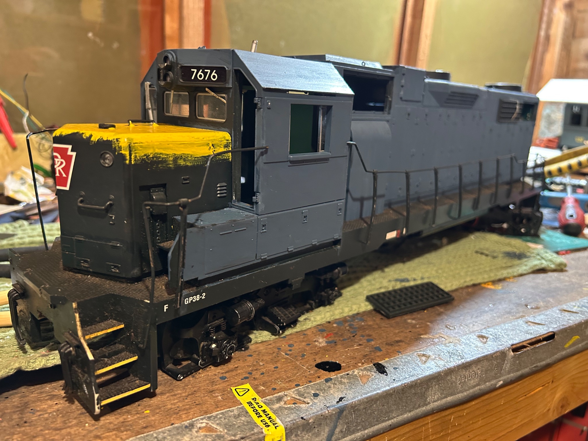my current project is repainting a gp38 in a BR blue inspired livery It’s slow progress due to the size of the loco, and all the fiddly bits such as grills etc, And all the various black panels need painting black to break up the blue Dan
